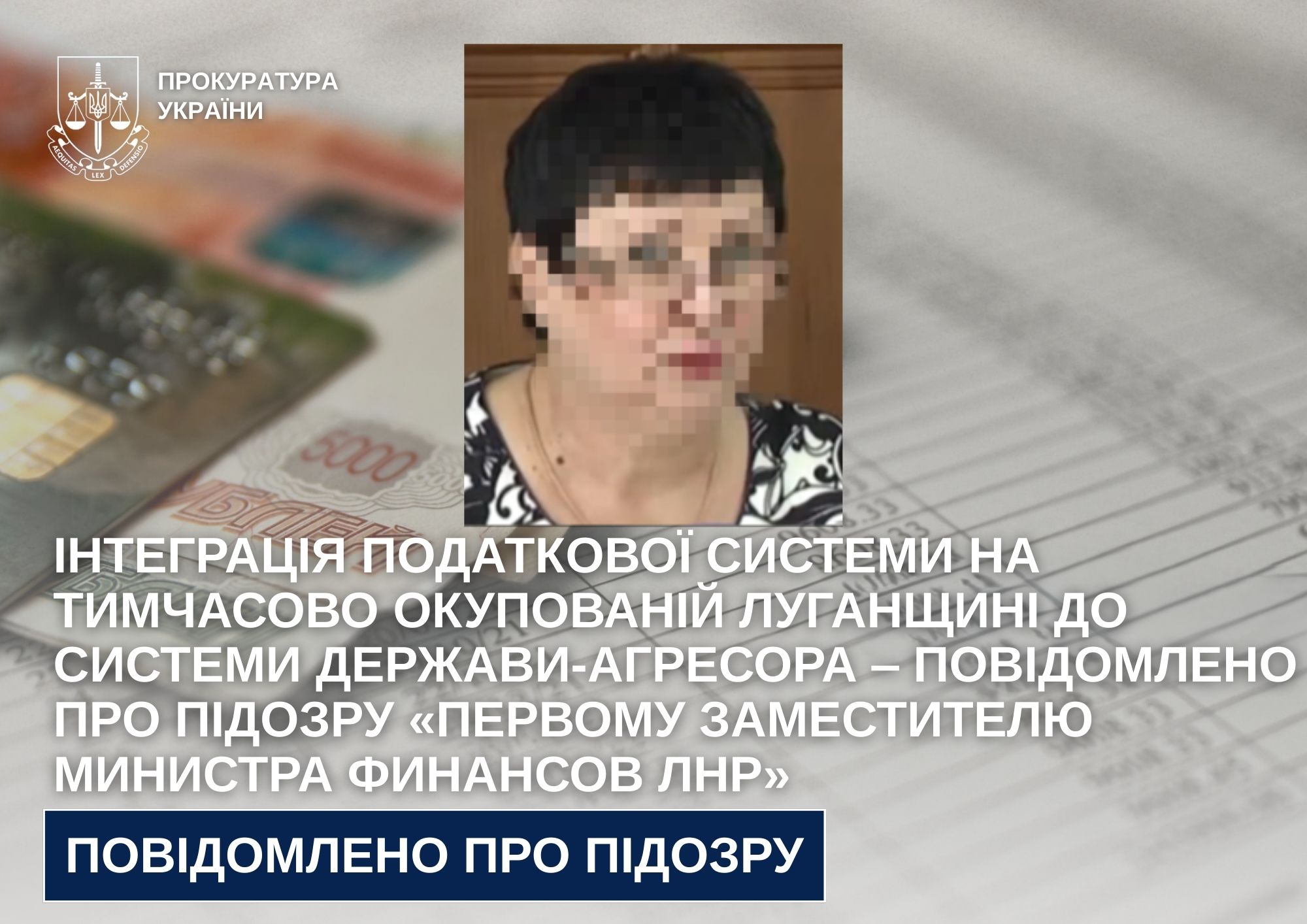 Інтеграція податкової системи на тимчасово окупованій Луганщині до системи держави-агресора ‒ повідомлено про підозру «первому заместителю министра финансов лнр»